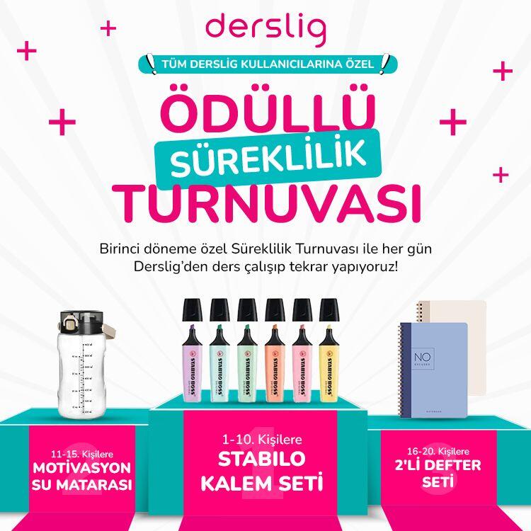 Derslig turnuvalarına sen de katıl, puan topla! Ücretsiz üye olarak hemen başlayabilirsin.